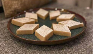 인도 디저트 까주 바르피(Kaju Burfi)는 인도의 전통적인 디저트 중 하나로, 어원은 그 이름에 힌디어 및 마라티어 어원이 반영되고 있다. "까주"는 힌디어로 "캐슈넛" 또는 "캐슈"를 가리키며, 주로 캐슈넛(혹은 캐슈넛 파우더)을 주 재료로 사용하기 때문에 이 이름이 부여되었다. "바르피"는 힌디어와 마라티어에서 디저트를 가리키는 일반적인 용어이다. 까주 바르피는 주로 캐슈넛, 설탕, 우유, 기름을 사용하여 만들어지며, 달콤하고 부드러운 맛을 가집니다. 이 디저트는 인도에서 축제, 결혼식, 기념일 등 다양한 특별한 기념일이나 자리에서 제공되며, 인도의 디저트 문화와 전통의 중요한 부분을 차지한다.